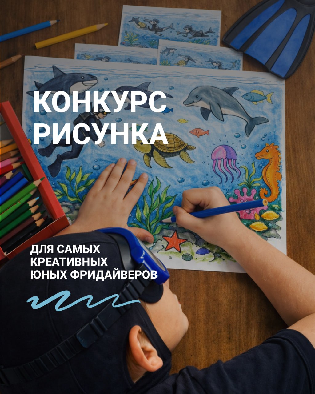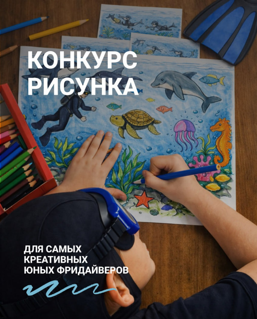 Детская школа фридайвинга имени Натальи Молчановой приглашает детей принять участие в творческом конкурсе рисунков и побороться за ценные призы.